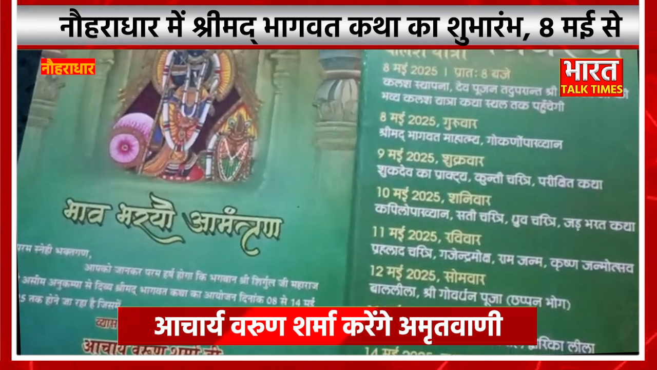 सिरमौर जिला के नौहराधार स्थित पावन शिरगुल महाराज मंदिर परिसर गेलियों में आगामी 8 मई से श्रीमद् भागवत कथा का शुभारंभ होने जा रहा है। श्रद्धालुजन इस पुण्य अवसर पर आचार्य वरुण शर्मा जी के मुखारविंद से श्रीमद् भागवत कथा का रसपान कर सकेंगे। कथा का आयोजन प्रतिदिन दोपहर 12 बजे से 3 बजे तक किया जाएगा।